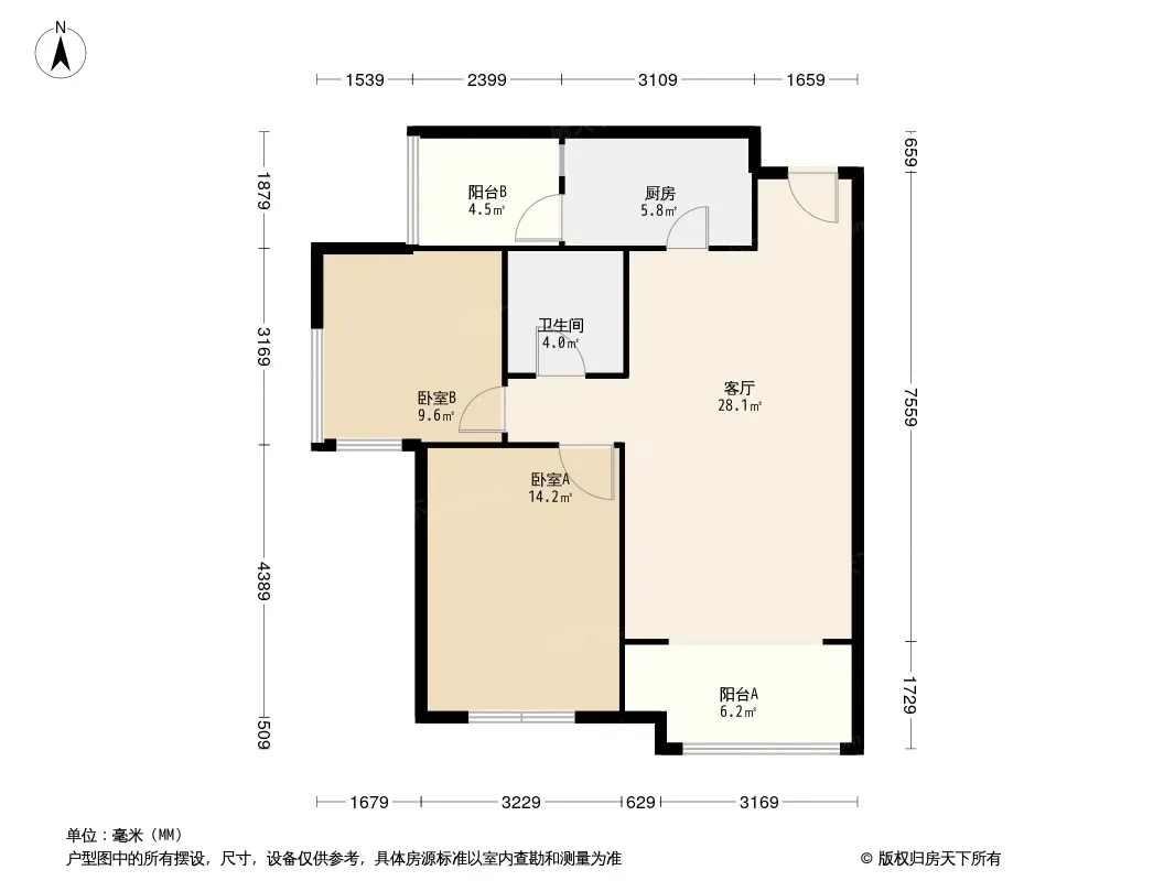 置信学府杏林二期 2室2厅 南