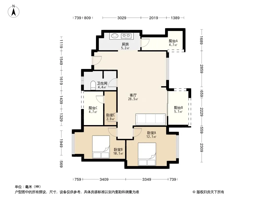 置信学府杏林二期 3室1厅 北