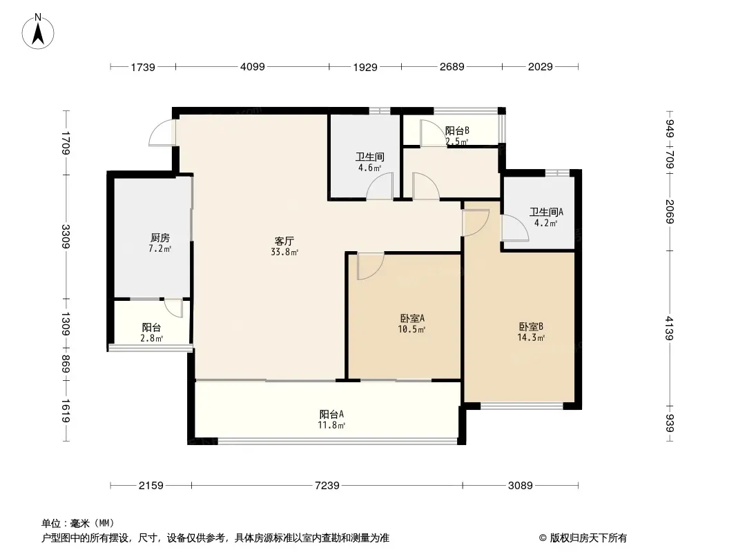 户型齐全,主打高附赠空间,采光充足三居