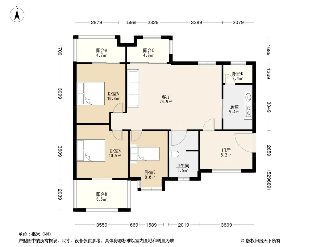 户型齐全,主打高附赠空间,采光充足三居