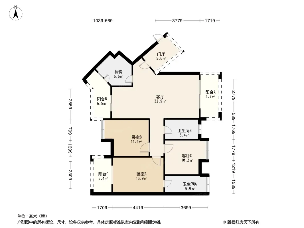 户型齐全,主打高附赠空间,采光充足三居