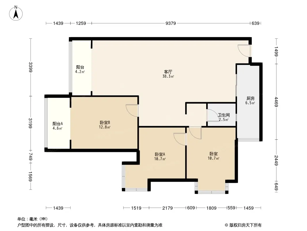 户型齐全,主打高附赠空间,采光充足三居