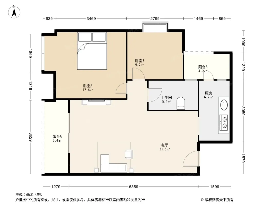 户型齐全,主打明卫,双阳台三居