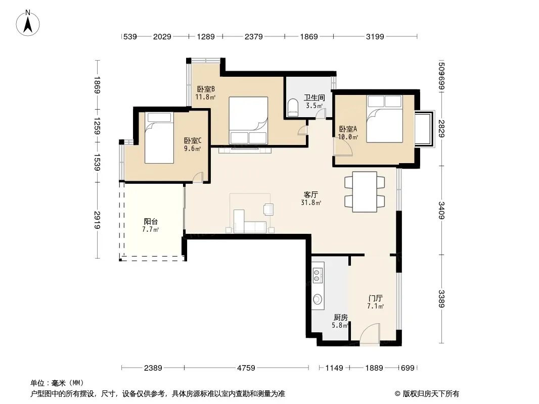 户型齐全,主打户型方正,明卫,独立衣帽间,明厨三居