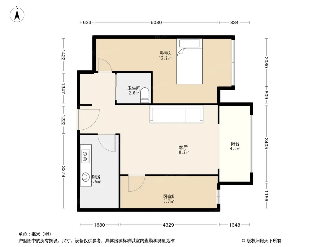户型齐全,主打明厨,客厅朝南二居