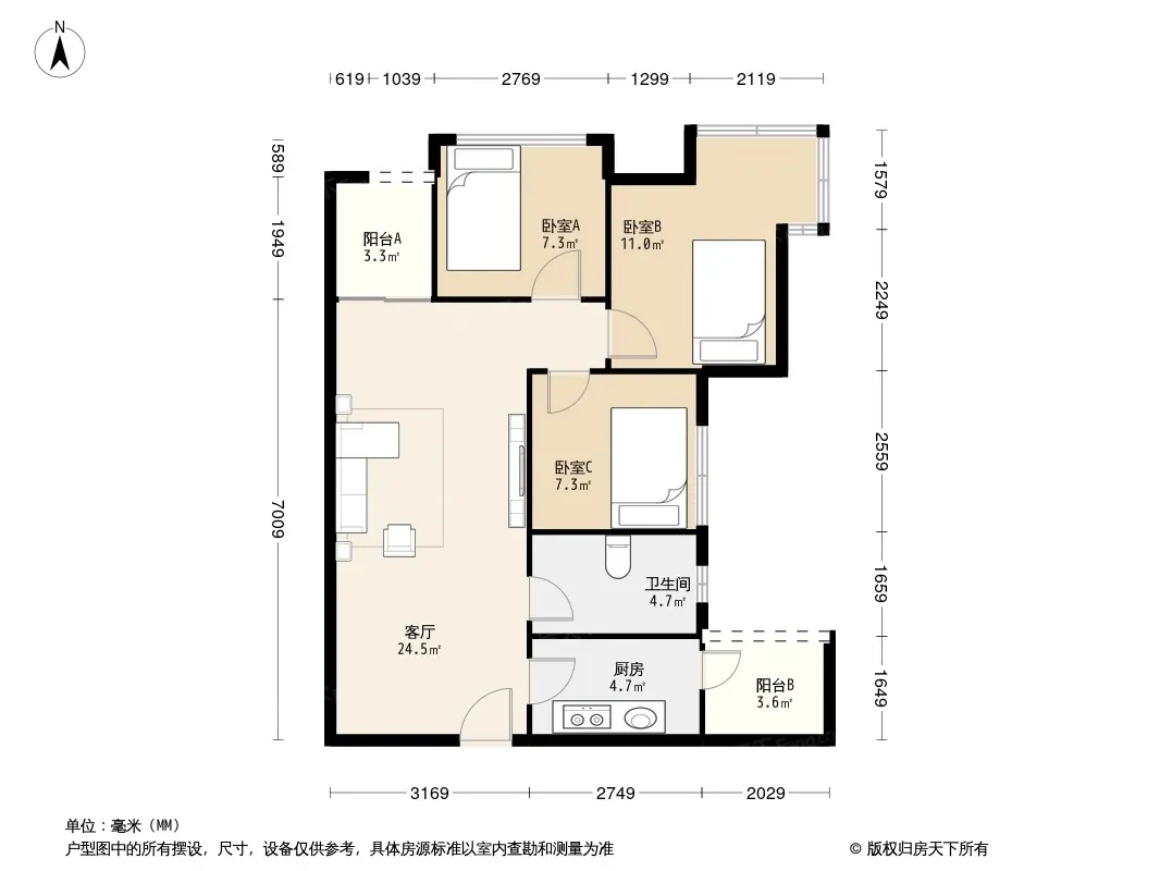 上置雅宾利 3室2厅 东