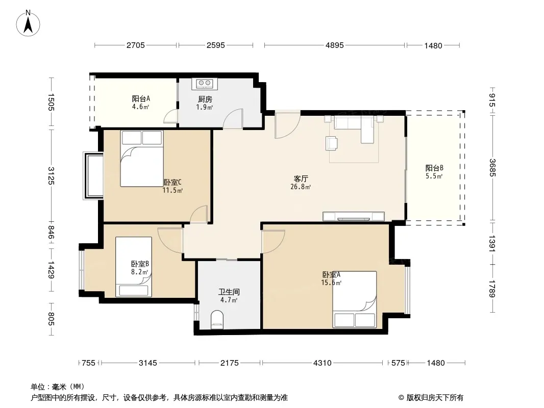 户型齐全,主打户型方正,明厨,明卫,双卧朝南,主卧朝南三居