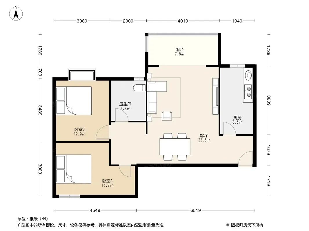 户型齐全,主打明厨,双卧朝南,主卧朝南二居