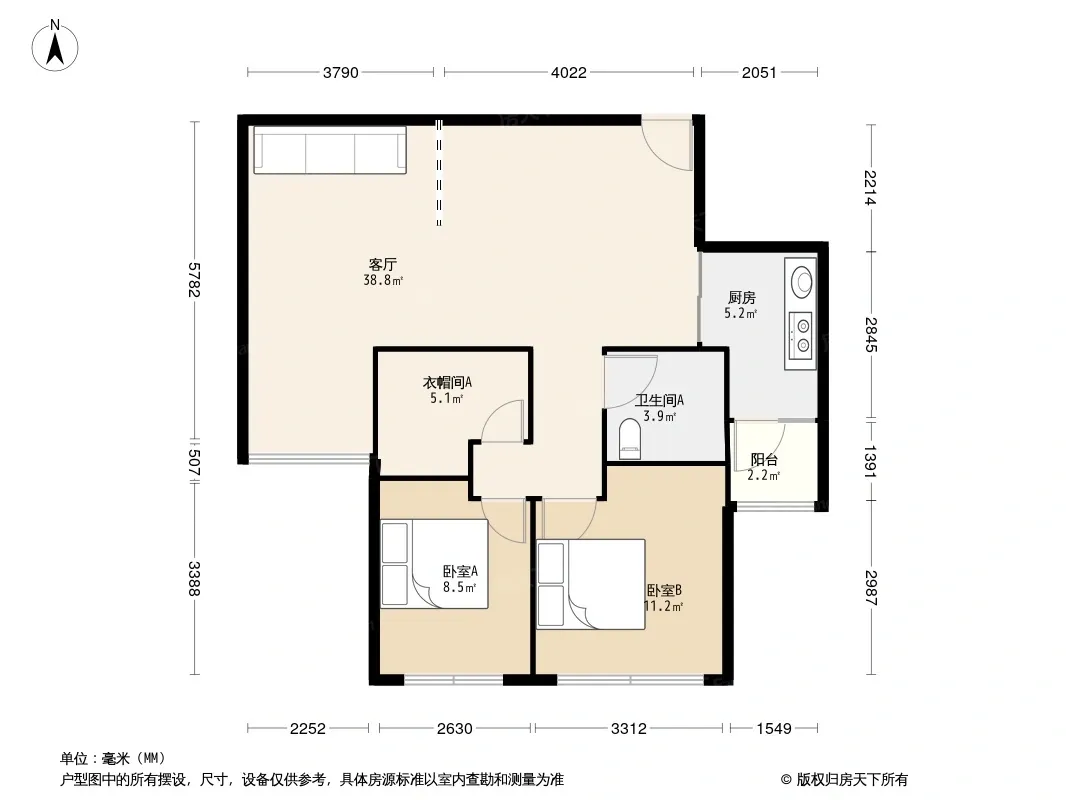 户型齐全,主打独立衣帽间,客厅朝南,双卧朝南,主卧朝南二居