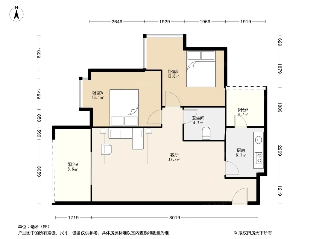 户型齐全,主打客厅朝南二居
