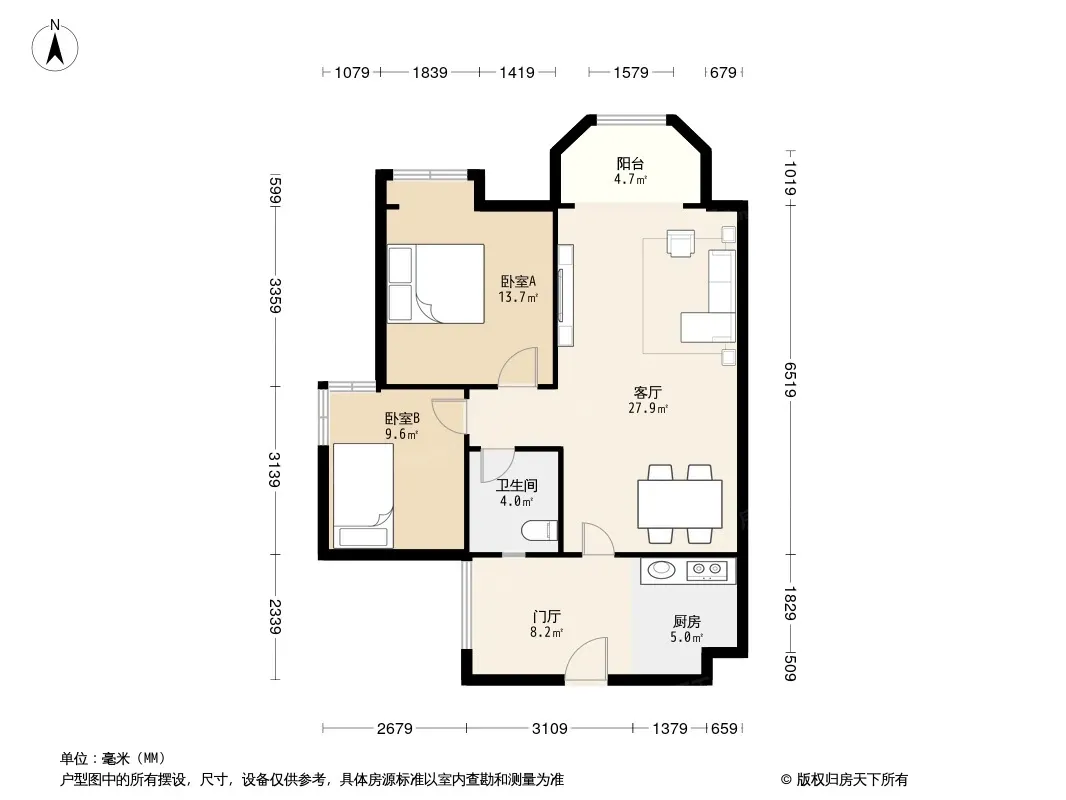 户型齐全,主打明厨,明卫,客厅朝南,全明格局三居