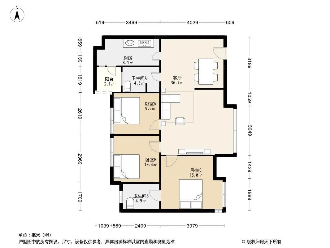 户型齐全,主打明厨,明卫,客厅朝南,全明格局三居