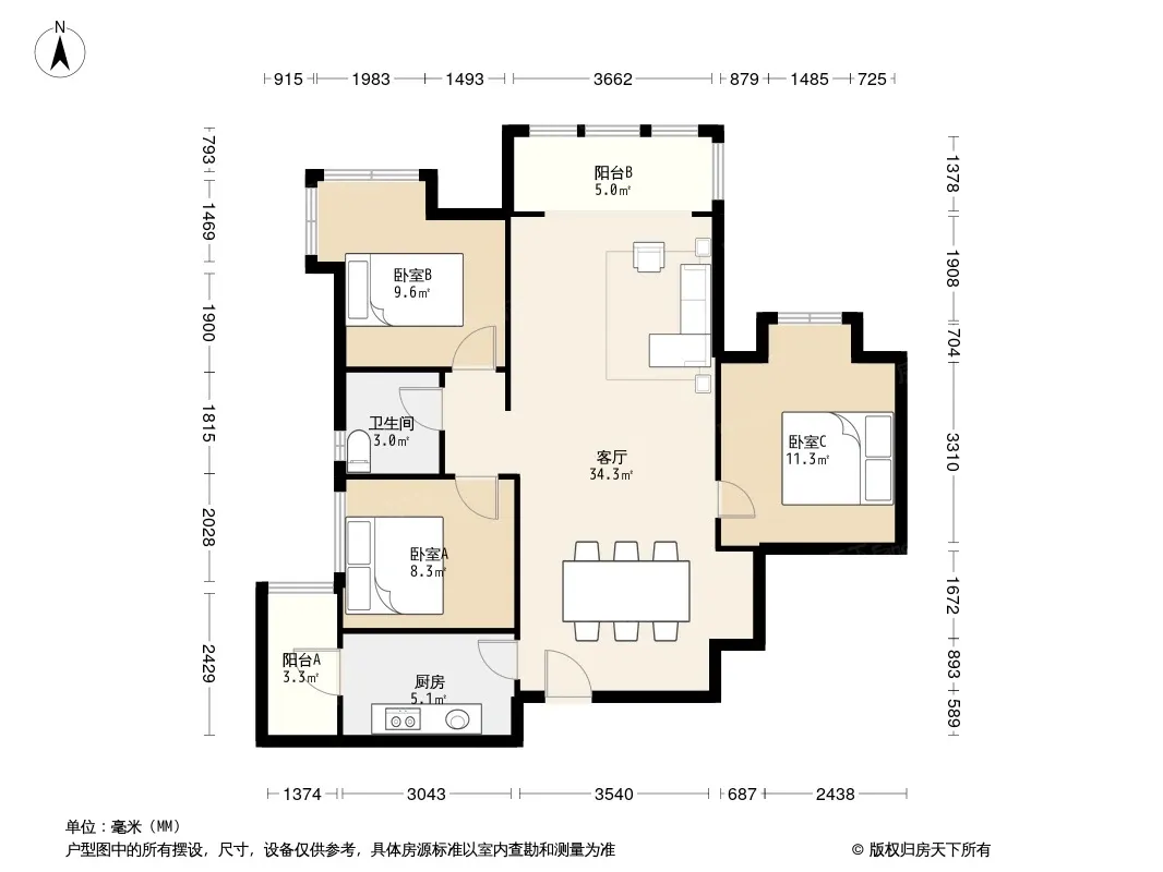 清溪雅筑 3室1厅 北