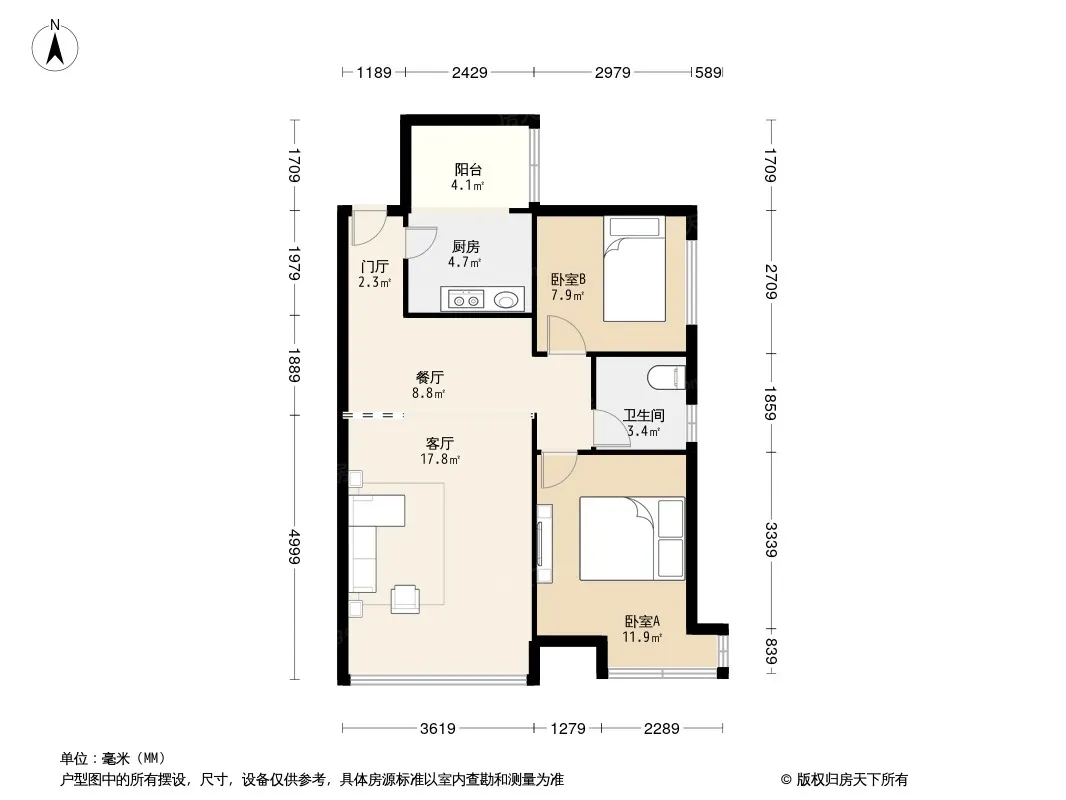 户型齐全,主打明卫,双卧朝南二居