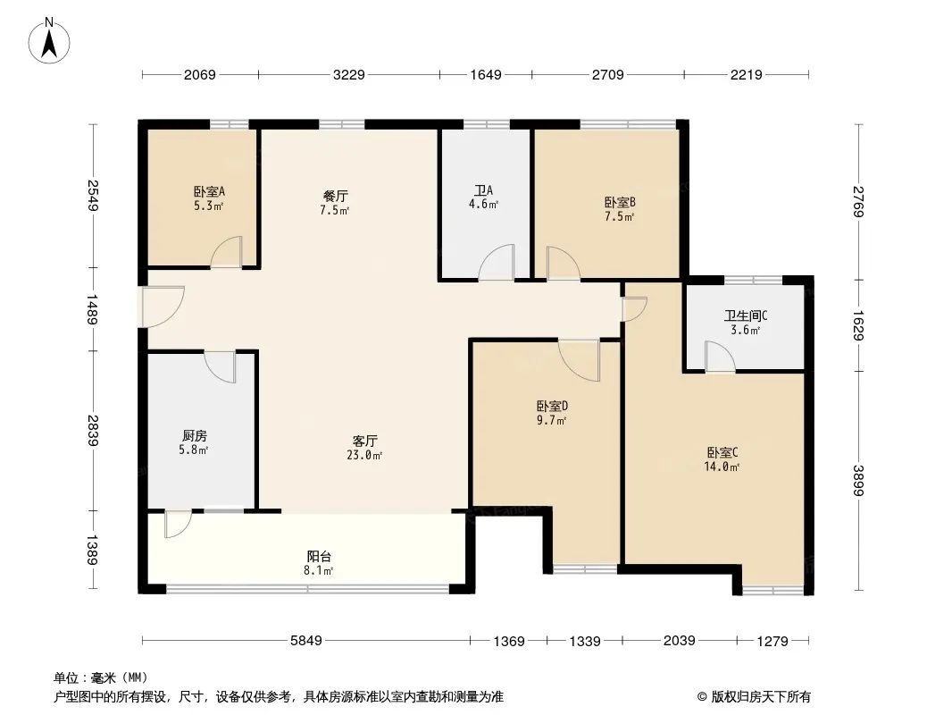 户型齐全,主打明卫三居
