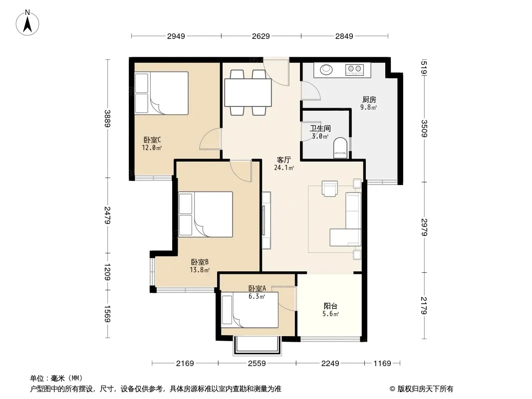户型齐全,主打明卫三居