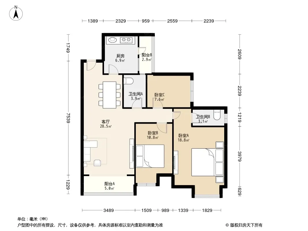 户型齐全,主打明卫三居