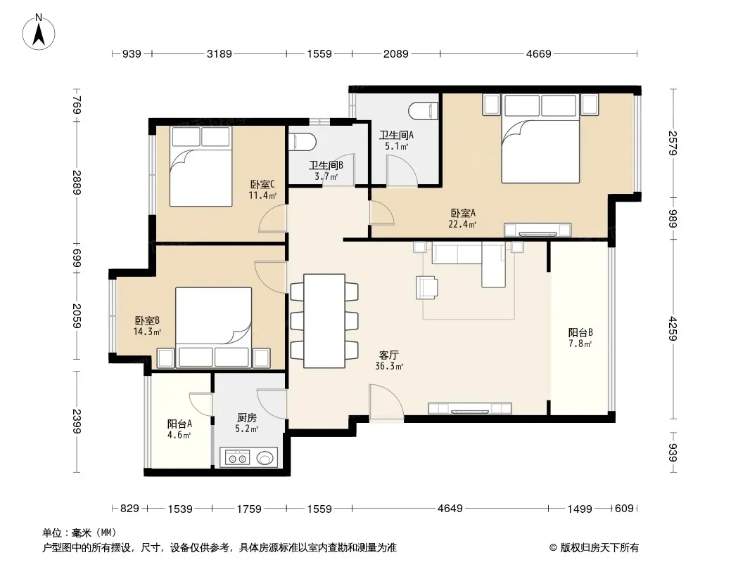 户型齐全,主打明卫三居