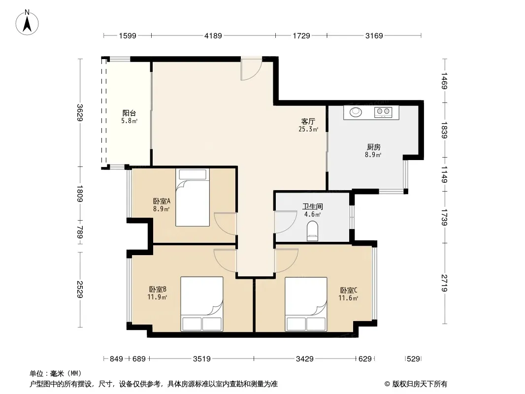 保利心语花园四期 3室1厅 西北