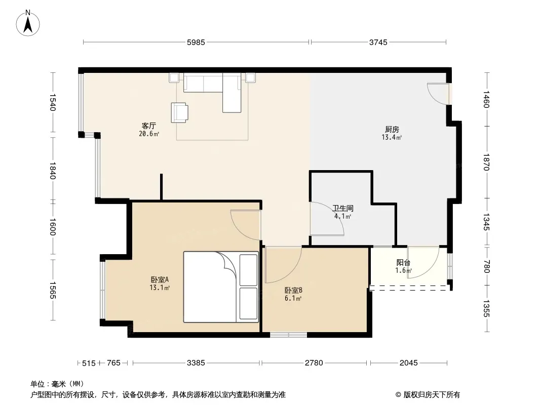 户型齐全,主打客厅朝南二居