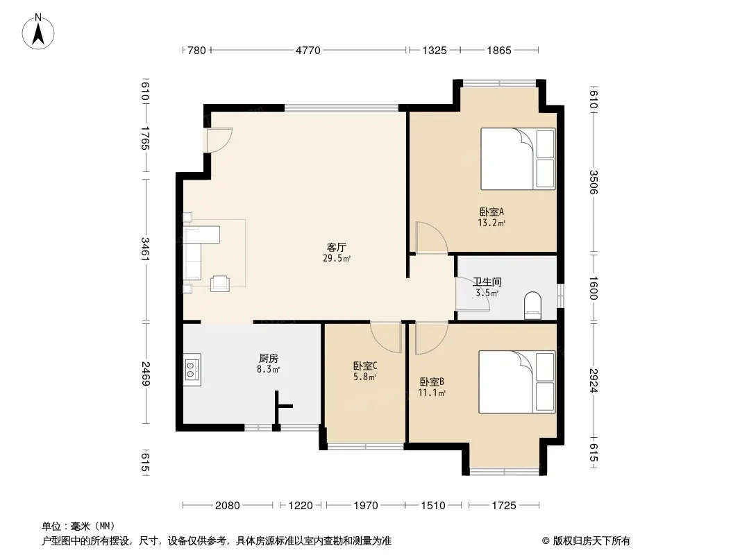 户型齐全,主打客厅朝南二居