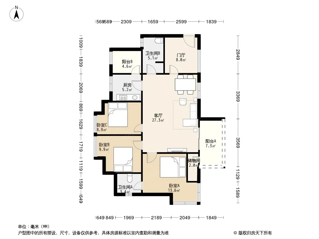 户型齐全,主打明卫三居