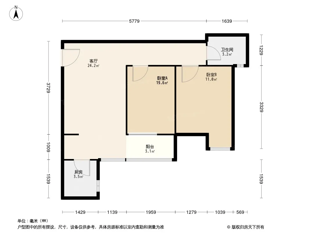 户型齐全,主打户型方正,明厨,主卧朝南二居