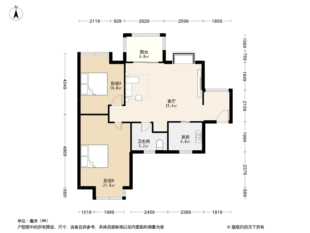 户型齐全,主打客厅朝南,双阳台,主卧朝南二居