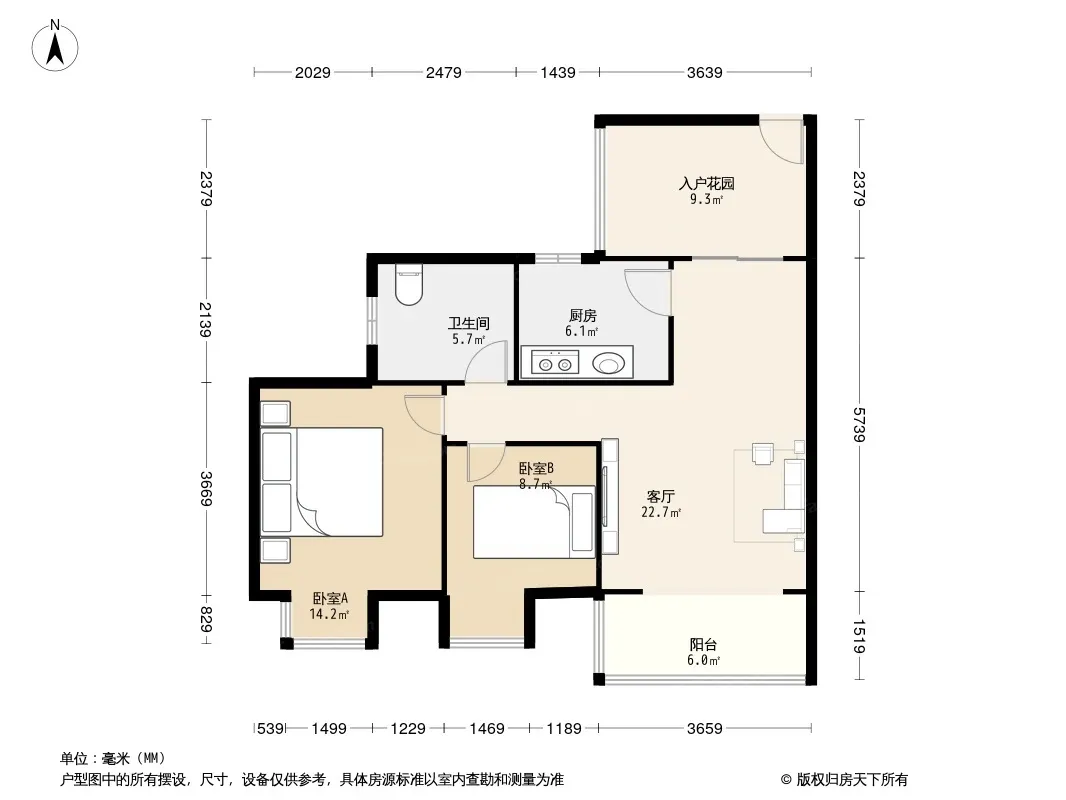 户型齐全,主打明卫,明厨,客厅朝南,全明格局二居