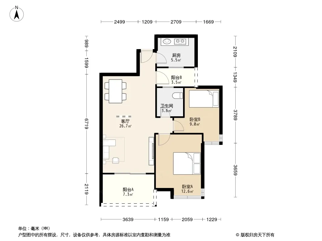 户型齐全,主打客厅朝南二居