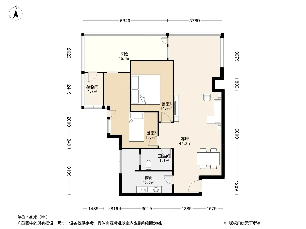 户型齐全,主打户型方正,明卫,客厅朝南,双阳台二居