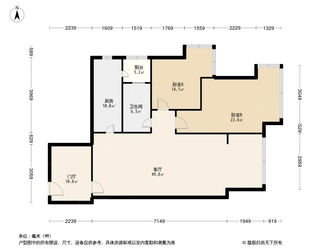 户型齐全,主打户型方正,明卫,客厅朝南,双阳台二居