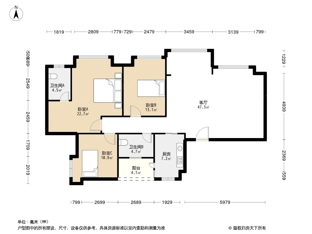 无国界 3室2厅 北