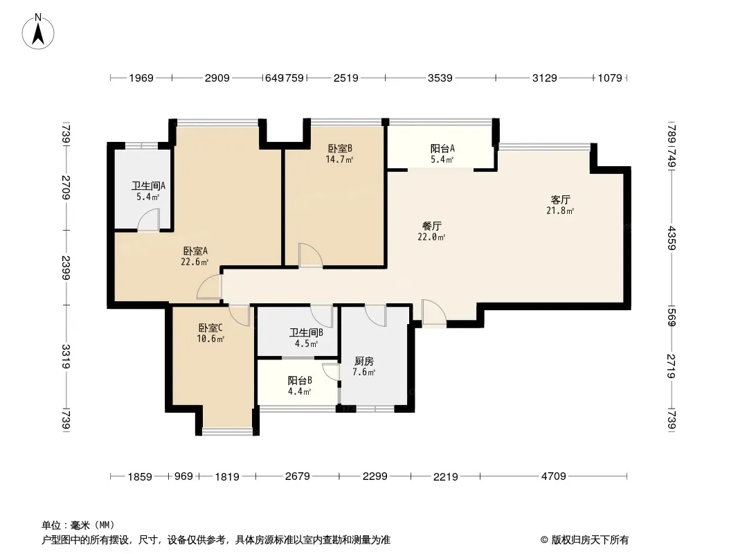 无国界 3室2厅 东南
