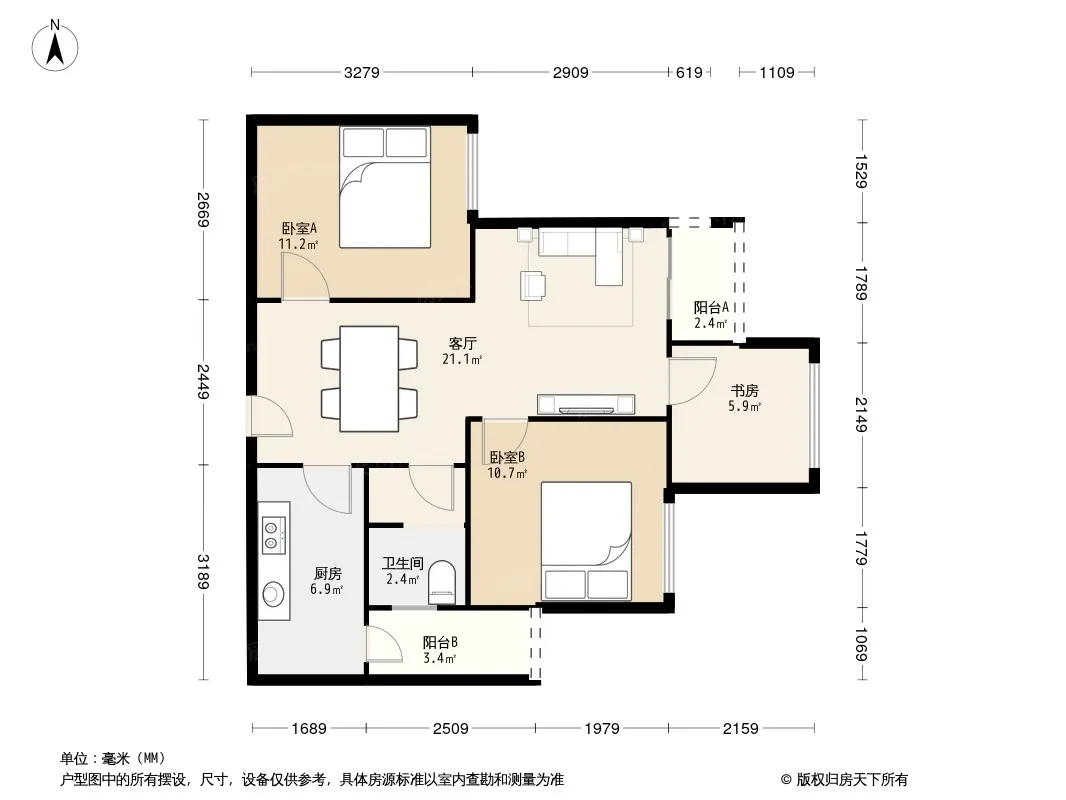 户型齐全,主打户型方正,明卫,明厨,客厅朝南,双阳台三居
