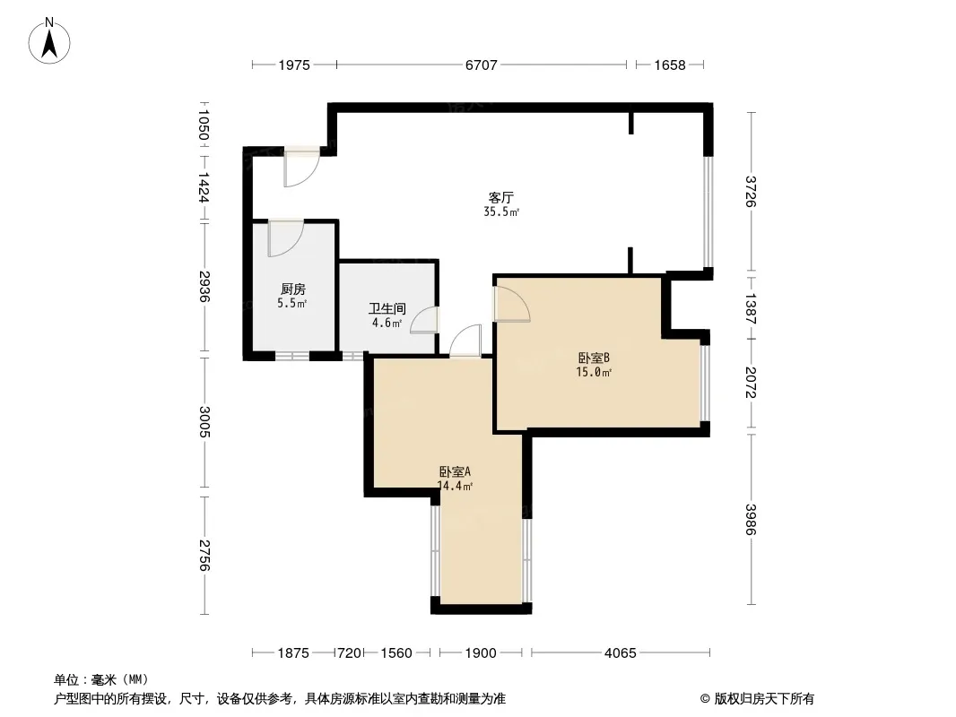 户型齐全,主打明厨,客厅朝南,双卧朝南,主卧朝南二居