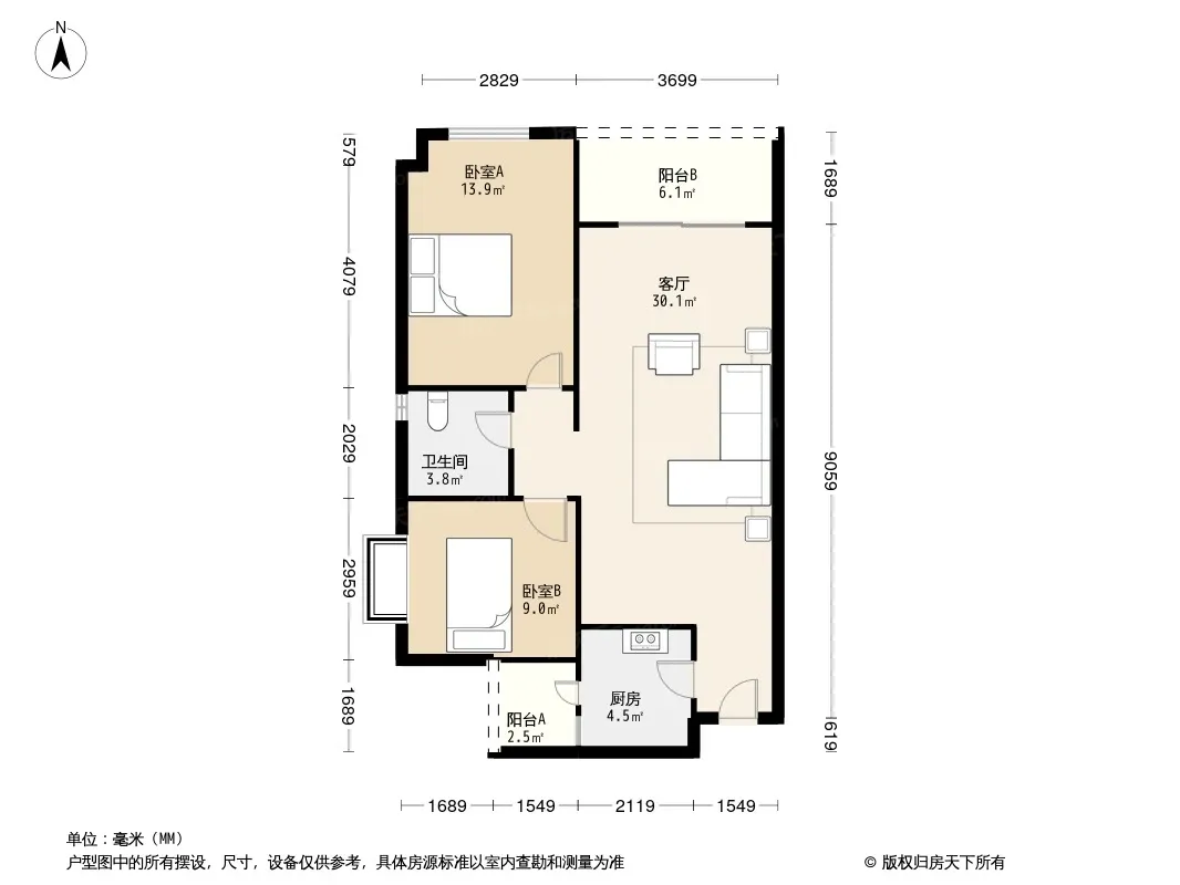 户型齐全,主打户型方正,明卫,双阳台,双卧朝南,主卧朝南三居