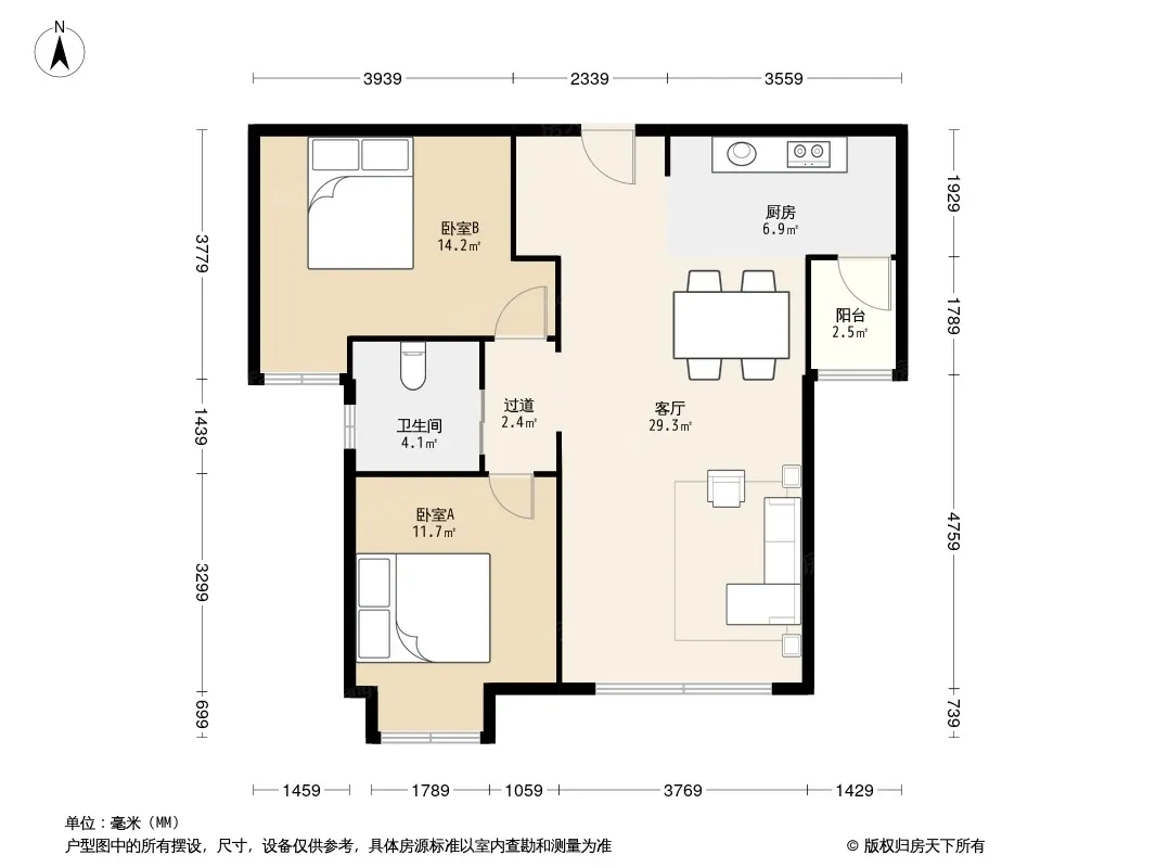 户型齐全,主打明厨,明卫,客厅朝南,全明格局,双卧朝南二居
