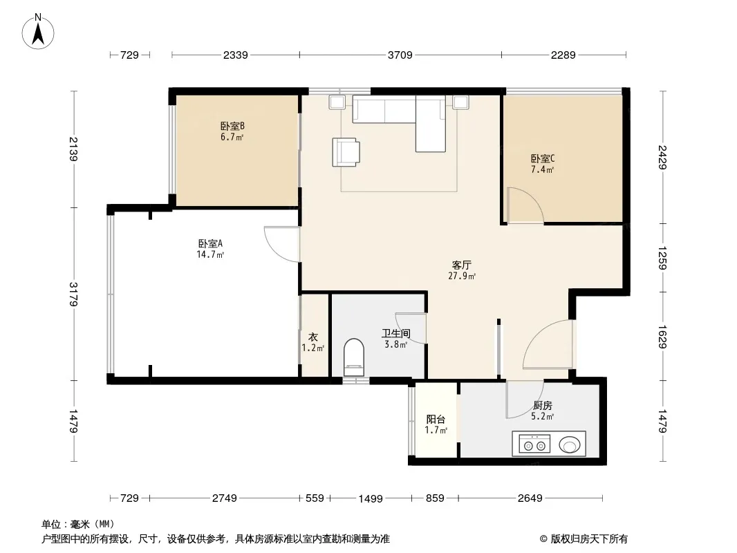 户型齐全,主打户型方正,明厨,明卫,客厅朝南,全明格局二居