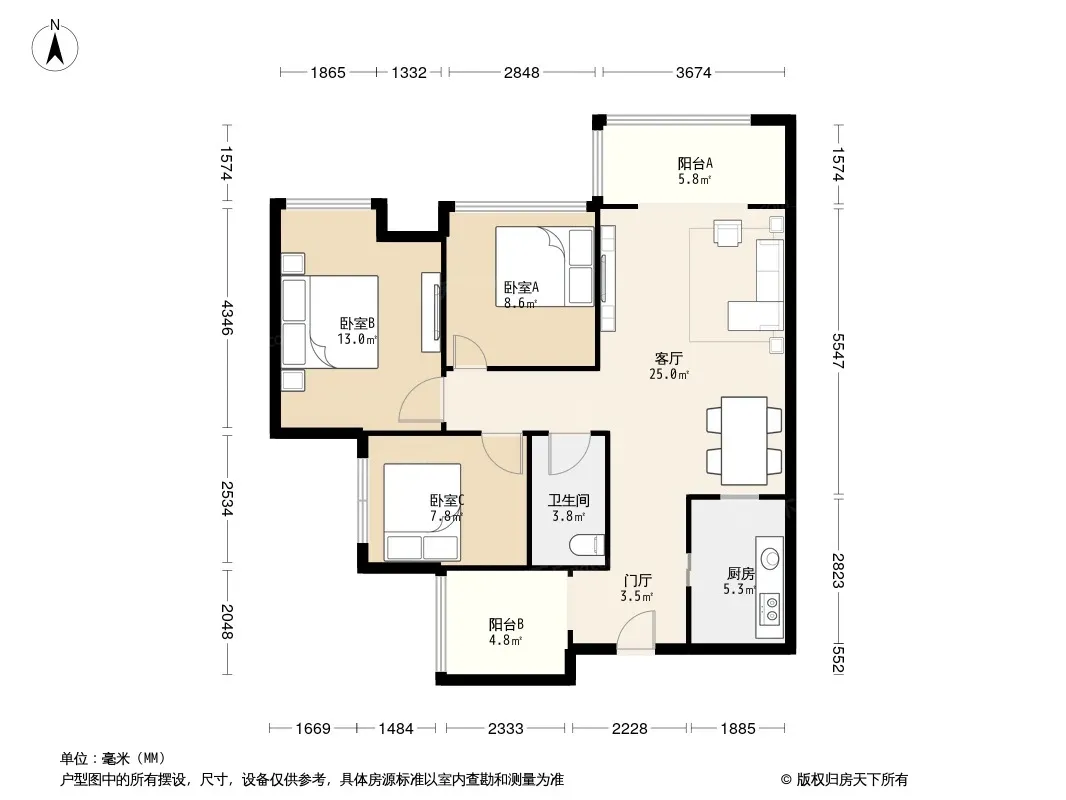 福地广场 3室1厅 北