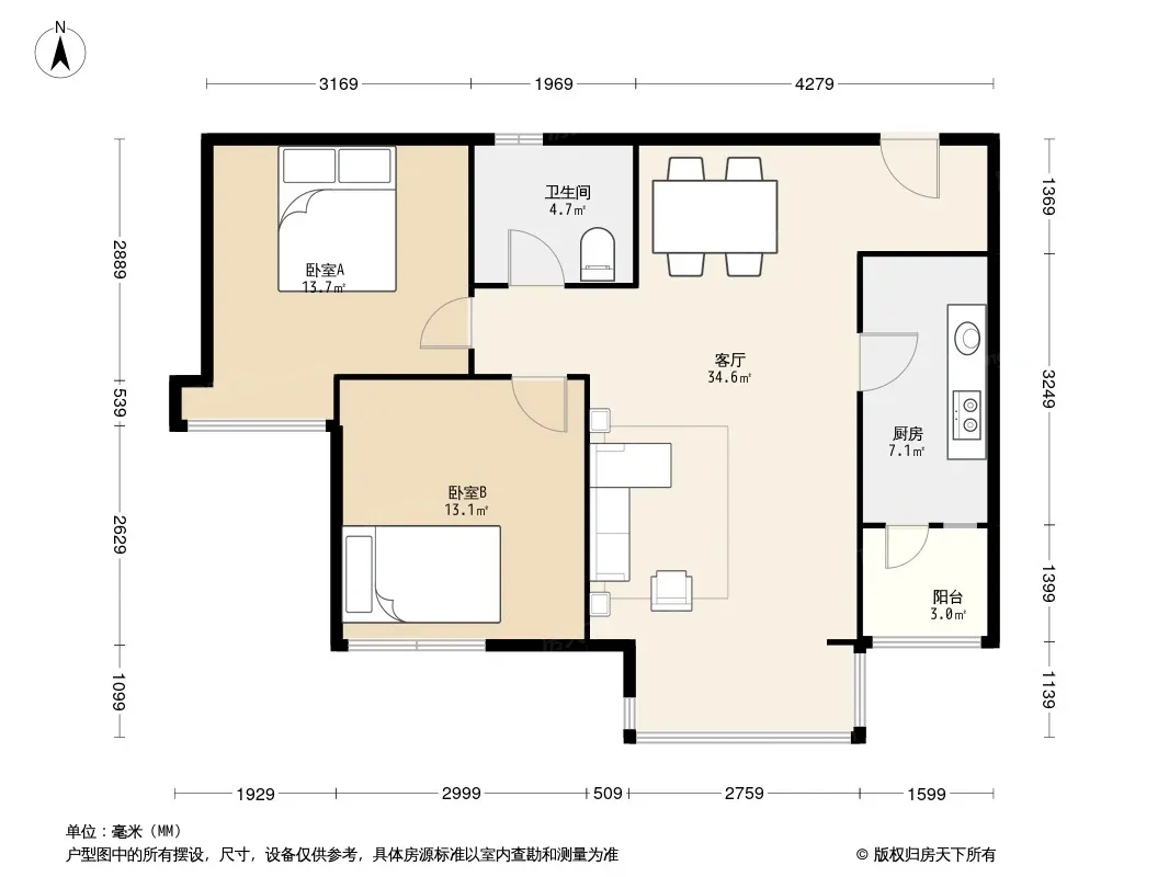 户型齐全,主打客厅朝南二居
