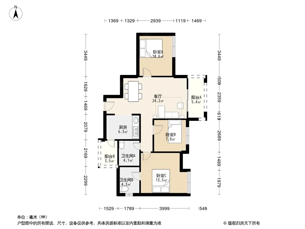 华宇天府花城 3室2厅 西北