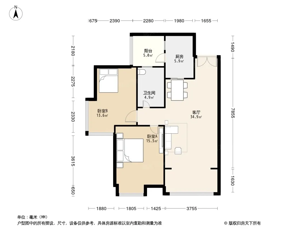 户型齐全,主打明厨,明卫,客厅朝南,全明格局,双卧朝南三居