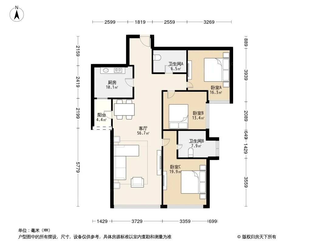 户型齐全,主打独立衣帽间,明卫,明厨,客厅朝南,全明格局,主卧朝南三居