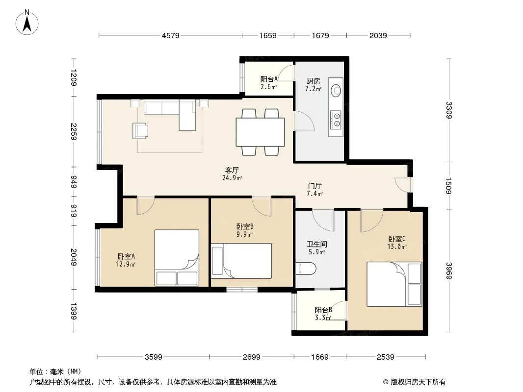 合能珍宝琥珀 3室1厅 南