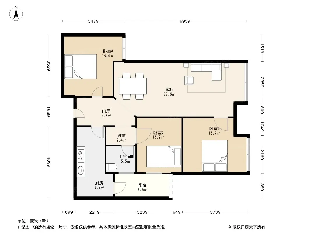 合能珍宝琥珀 3室1厅 西南
