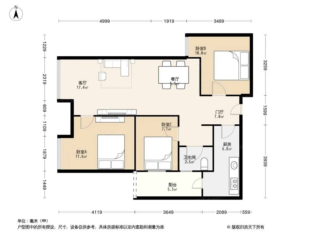 合能珍宝琥珀 3室1厅 南