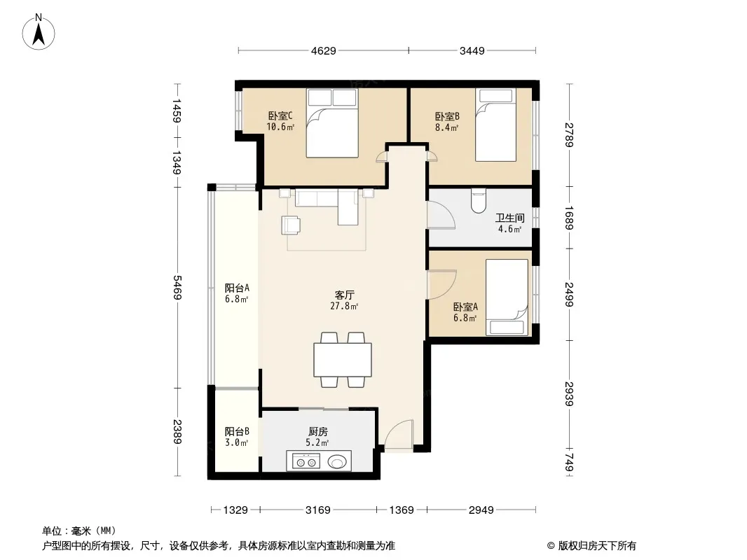 合能珍宝琥珀 3室2厅 北