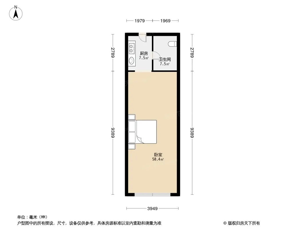 恒大帝景 1室1厅 东南