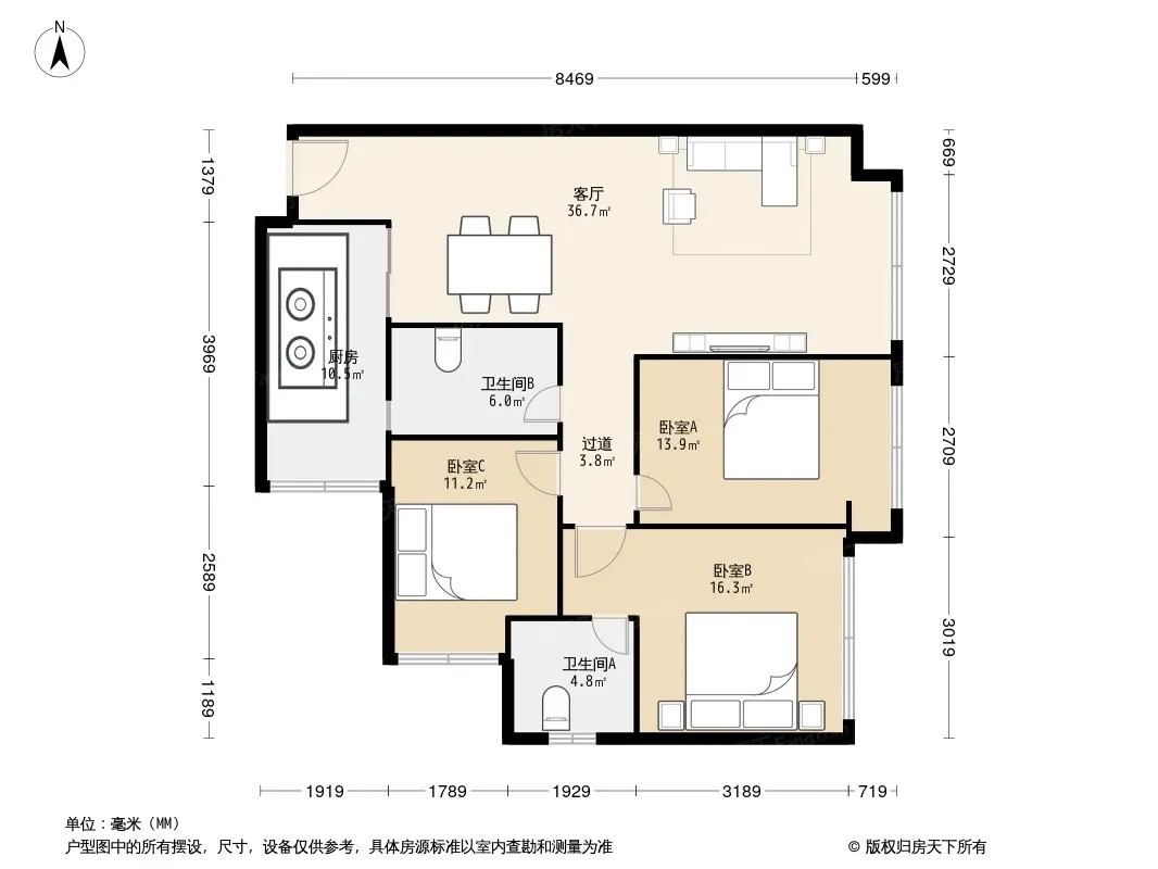 户型齐全,主打户型方正,明厨,明卫,客厅朝南,全明格局三居